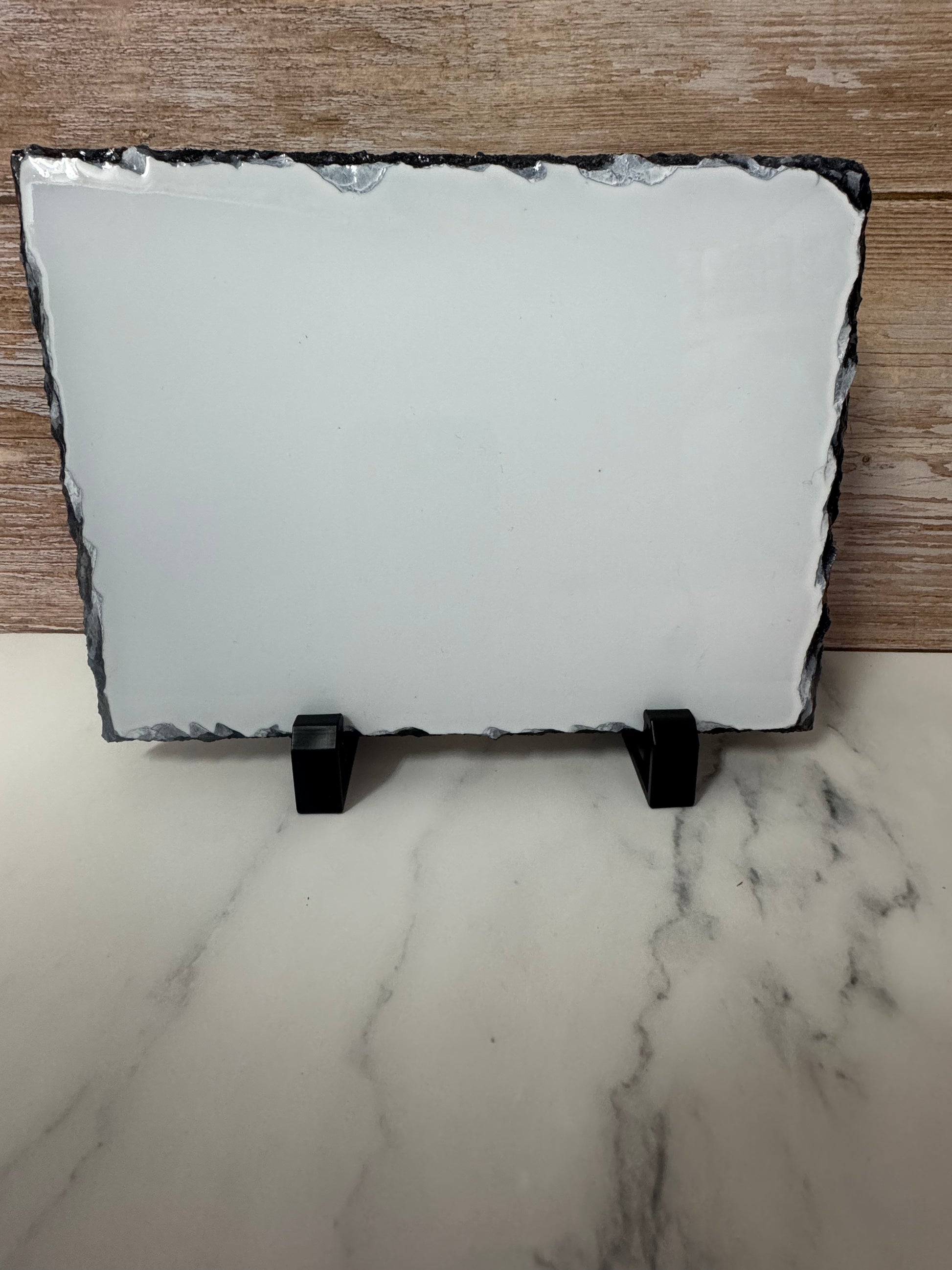 🪨 Support en ardoise naturelle, aux contours irréguliers uniques.